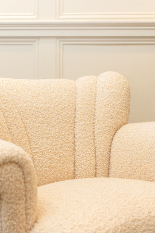 Swedish Wingback Chair in Ivory Sherpa Boucle