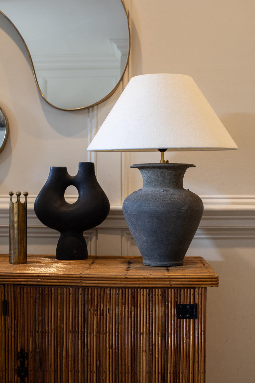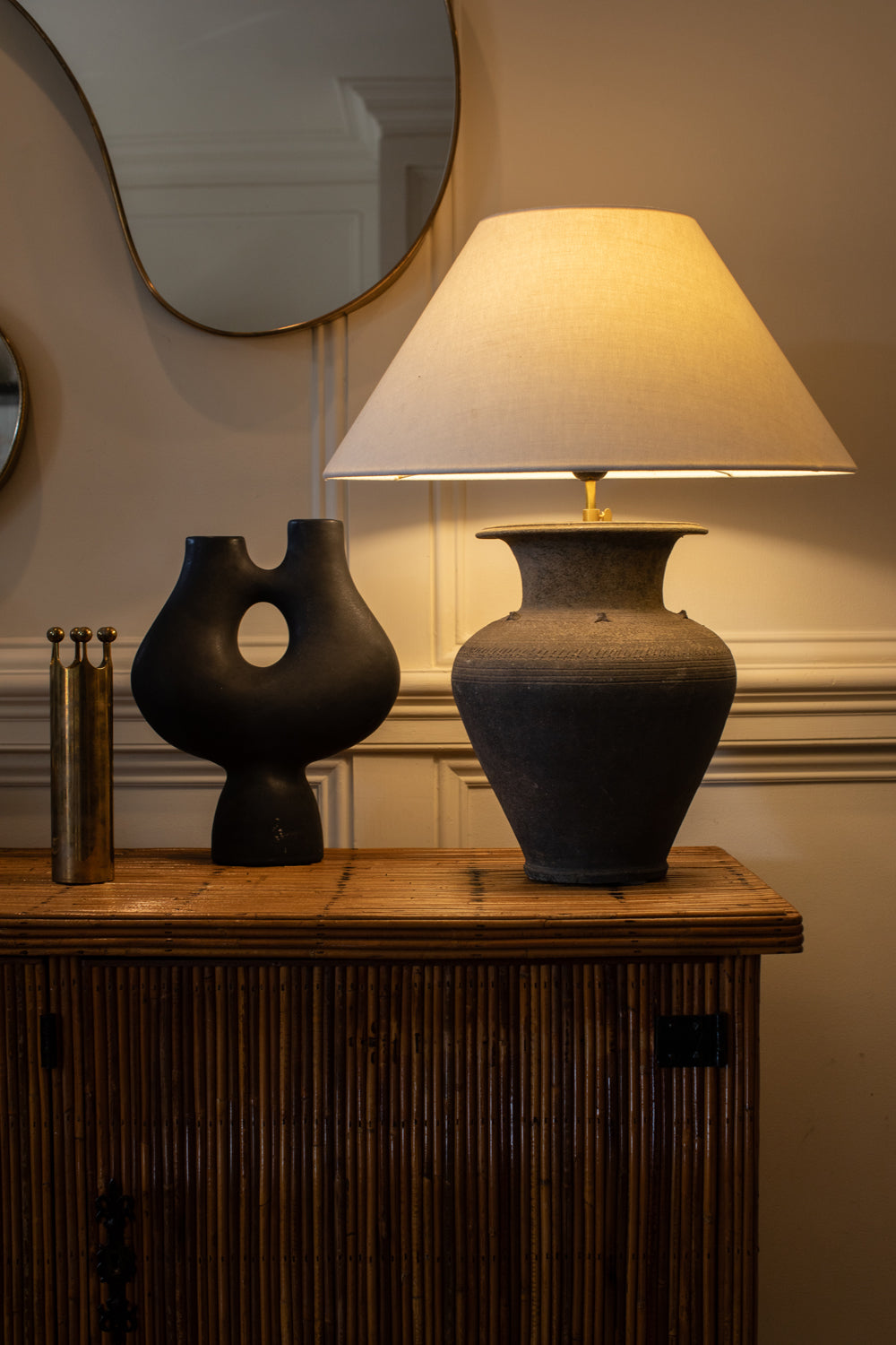 Antique urn style Khmer vase wired to be a lamp, shade included