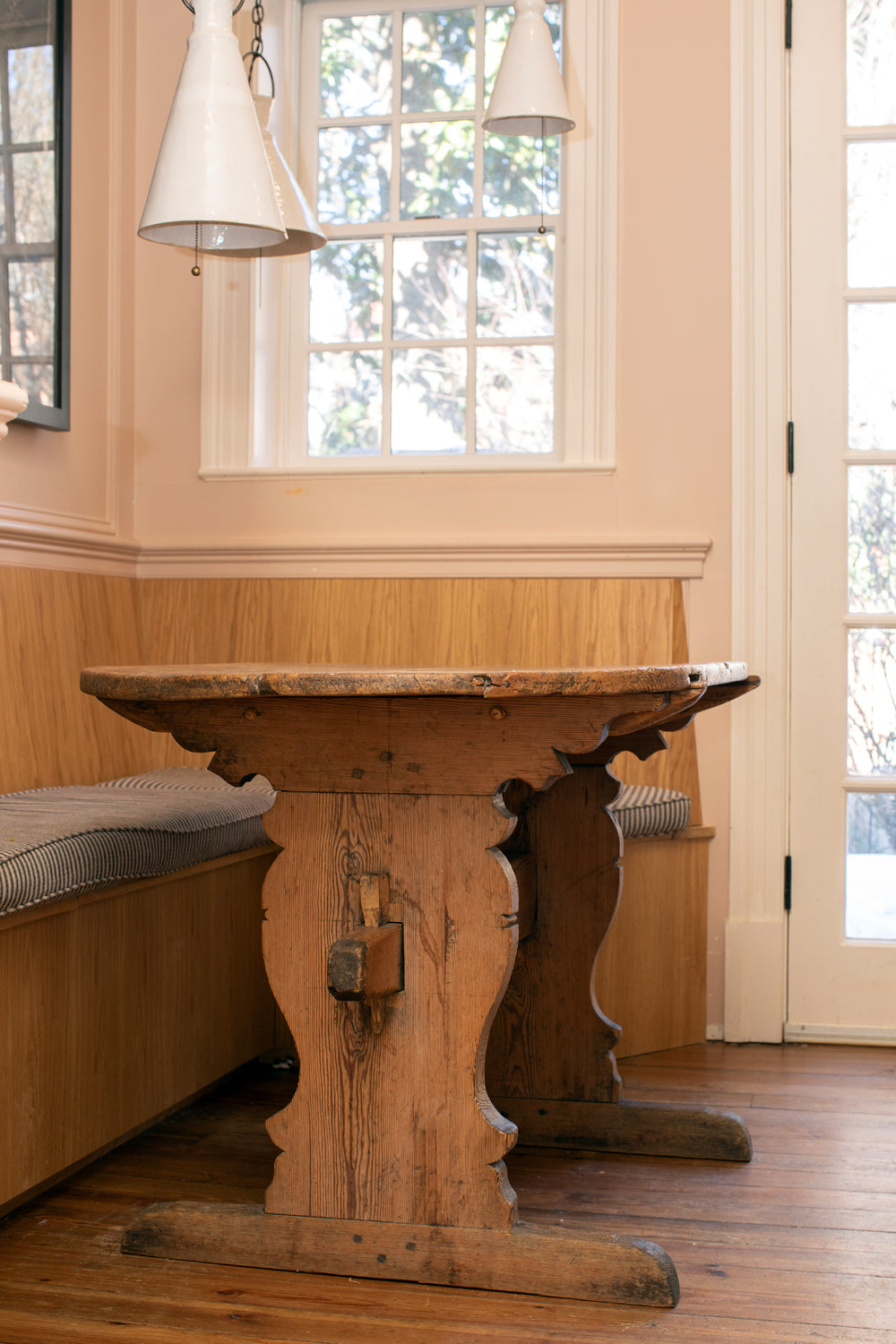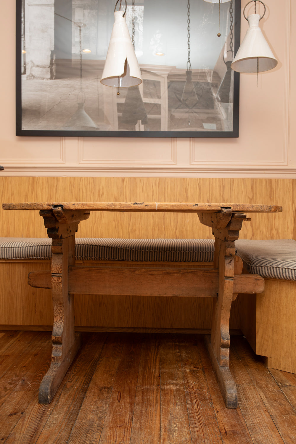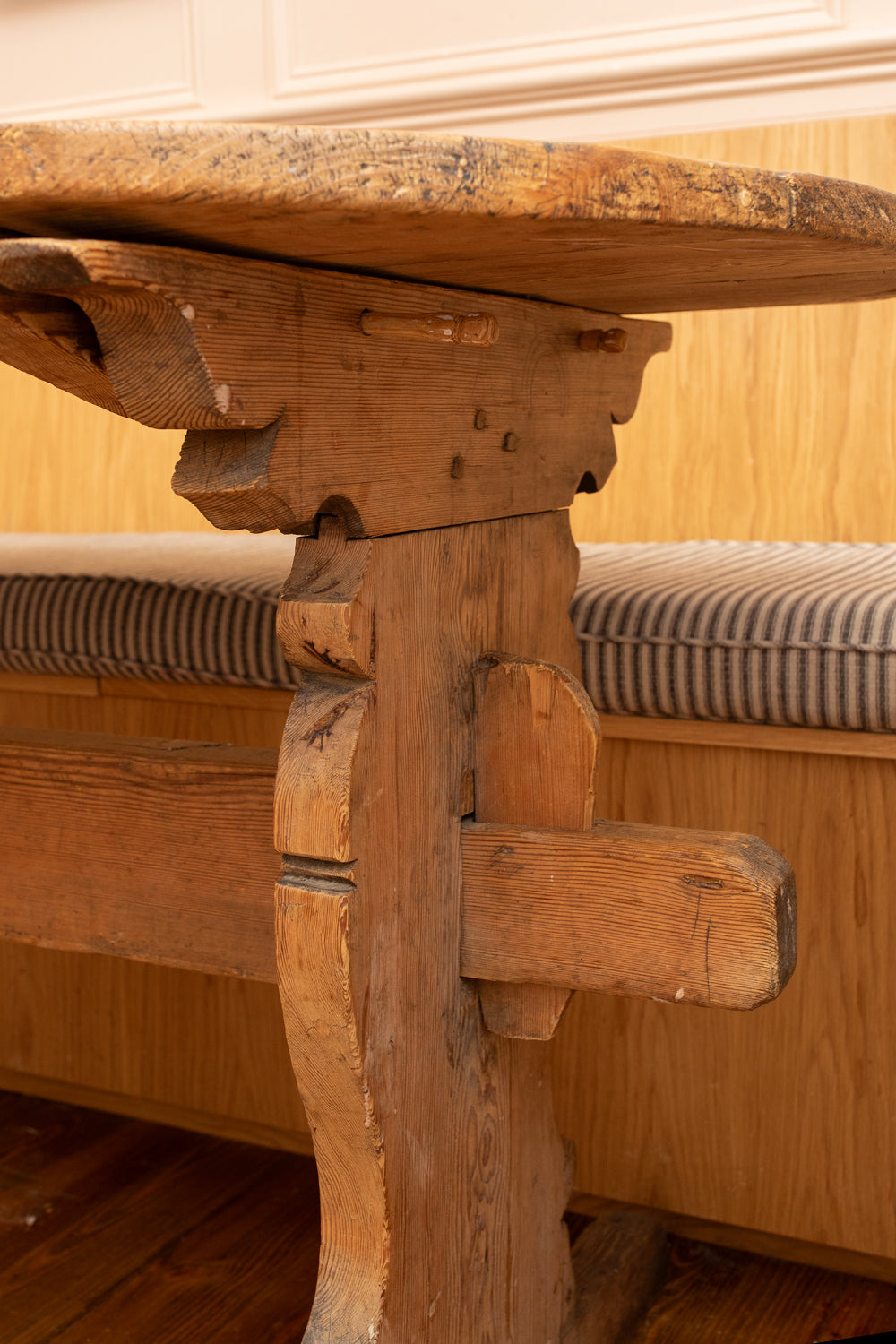 Romantic Gustavian wooden trestle table with gorgeous patina celebrating the life it has seen