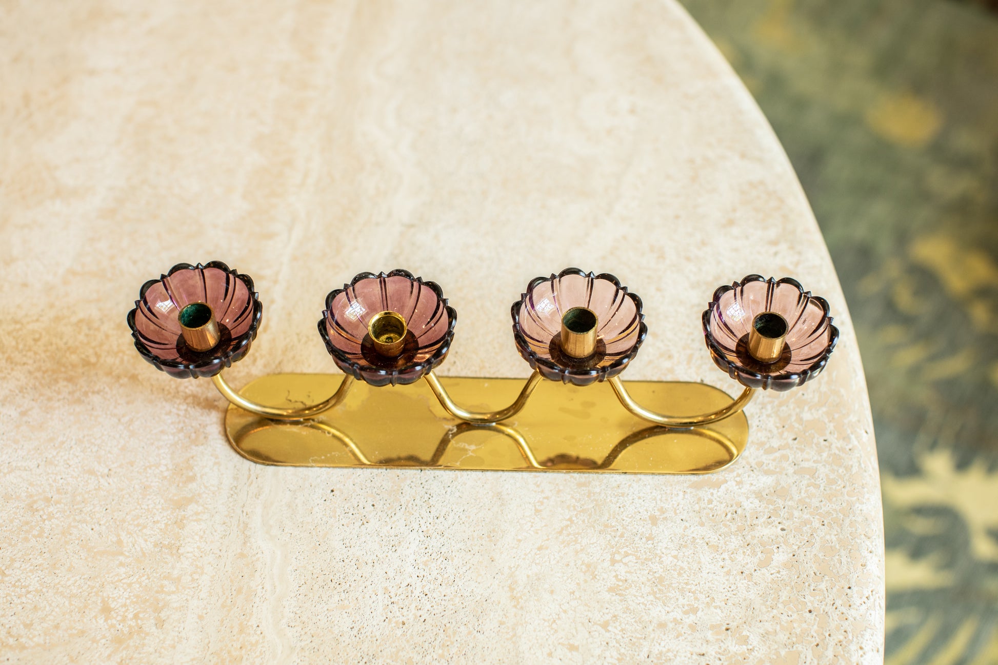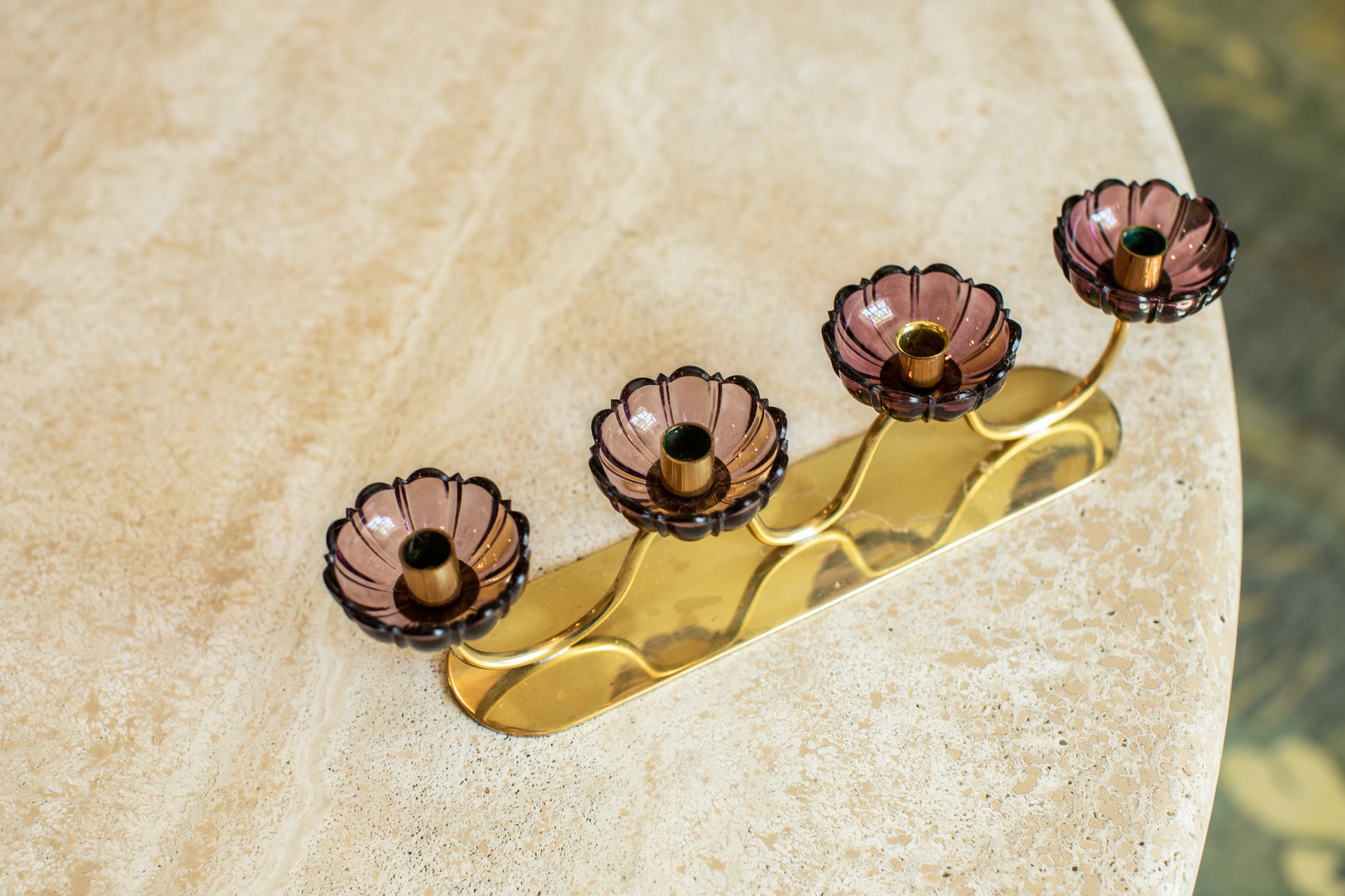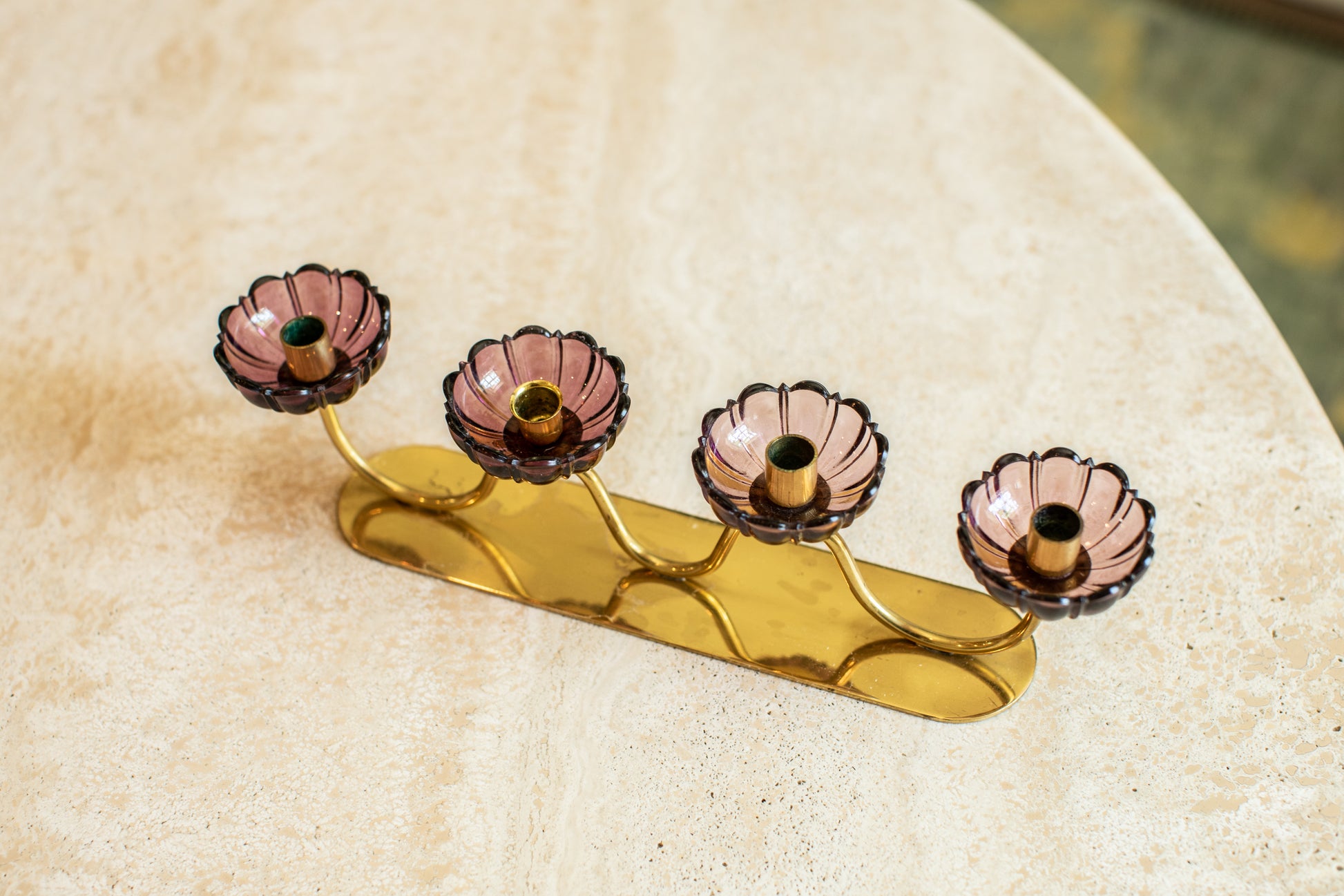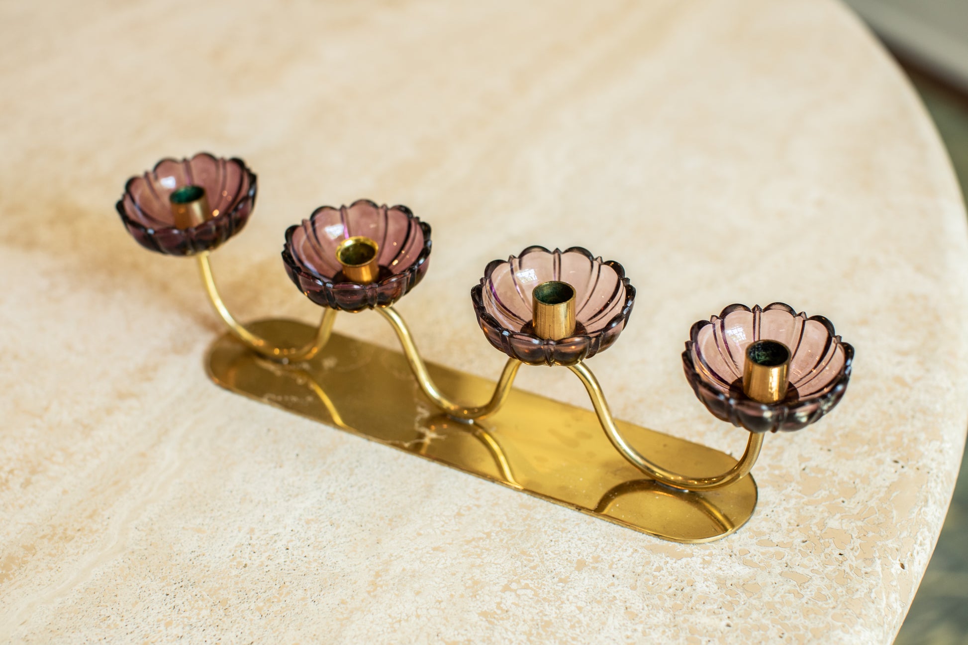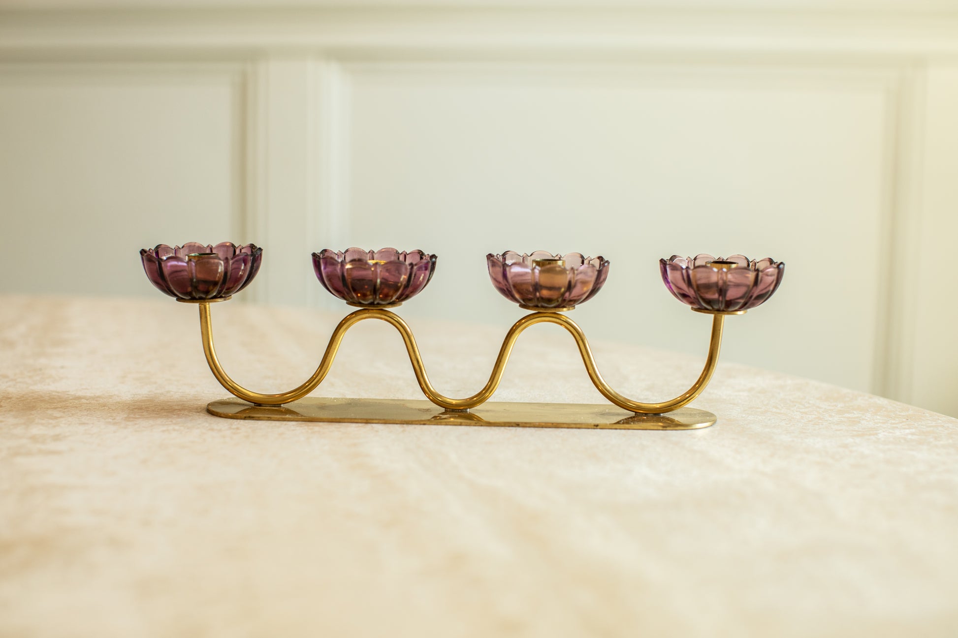 Ystad Metall Brass Four-Armed Purple Candlestick Holder